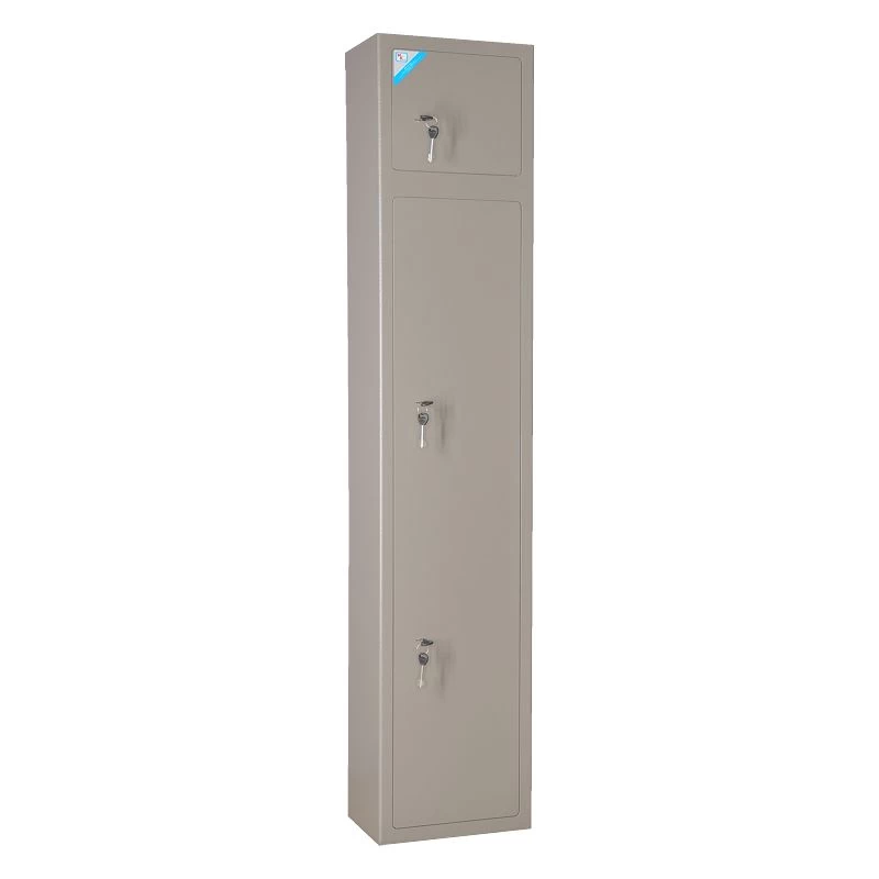 - Сейф двухсекционный, на 2 ствола оснащен съемными полками и отдельной секцией под патроны.